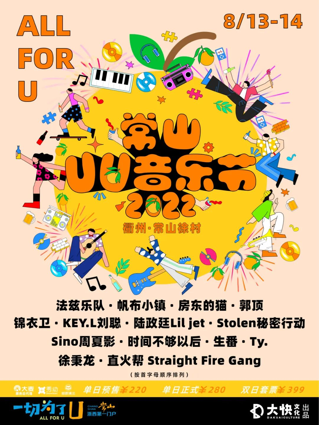 2022常山UU音乐节,于7月28日14:30起,大麦APP、秀动APP、猫眼APP开放购票!演出时间表,出行信息,现场活动等更多信息将持续推出,请保持关注!