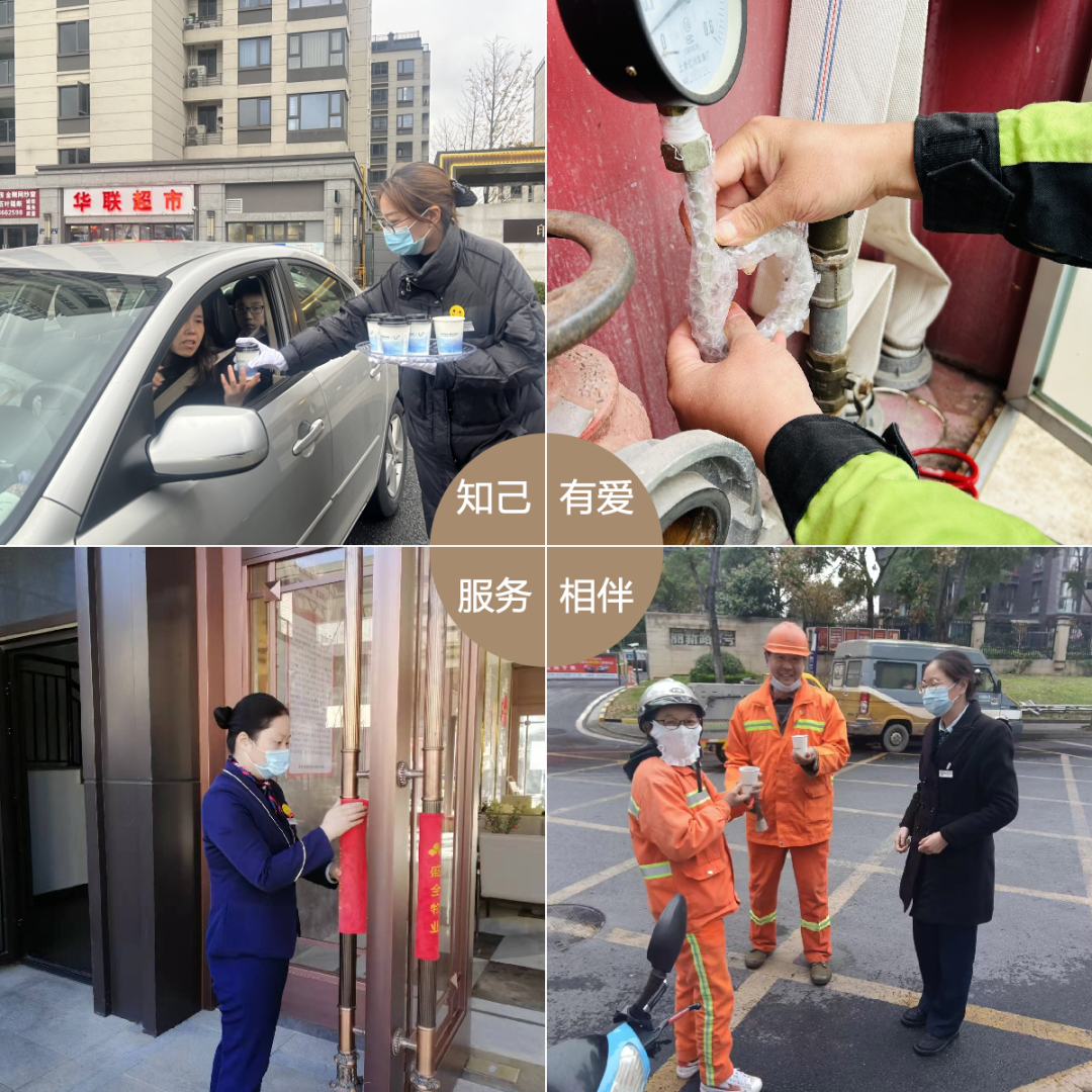 在杭州、上海、温州等多座城市,各项目通过给业主发放热饮、安装门把手套、安装设施防冻保温套、树木加固防冻等各类措施,温暖守护知己。与此同时,多个项目纷纷走出园区,通过给快递小哥、外卖员、环卫工人发放热饮的方式,向社会传达知己的温暖。